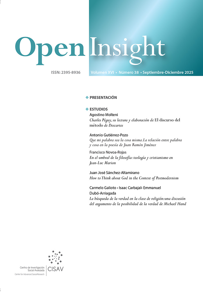 Open Insight, Vol. XVI, N. 38, septiembre-diciembre de 2025 es una publicación digital de investigación científica evaluada por pares, de acceso abierto, editada y publicada en formato electrónico, con periodicidad cuatrimestral, por el Centro de Investigación Social Avanzada, A.C., con domicilio en Av. Fray Luis de León 1000, Centro Sur. CP: 76090, Querétaro, Querétaro. Teléfono: +52 (442) 245 2214. www.cisav.mx. Correo electrónico: ramon.diaz@cisav.mx.